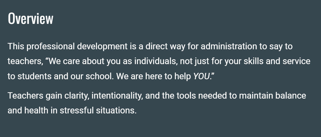Teaching from the Inside Out: Mindfulness, Mindset and Wellness for Teachers On-line Credit Course